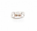 The new piece features linked solid 9ct rose gold snaffle rings set into the front of a polished sterling silver band. The snaffle rings are raised to add extra interest and really stand out against the silver, in colour as well as feel. The ring was designed by the team as a different way to wear one of the company’s most popular ring designs.
