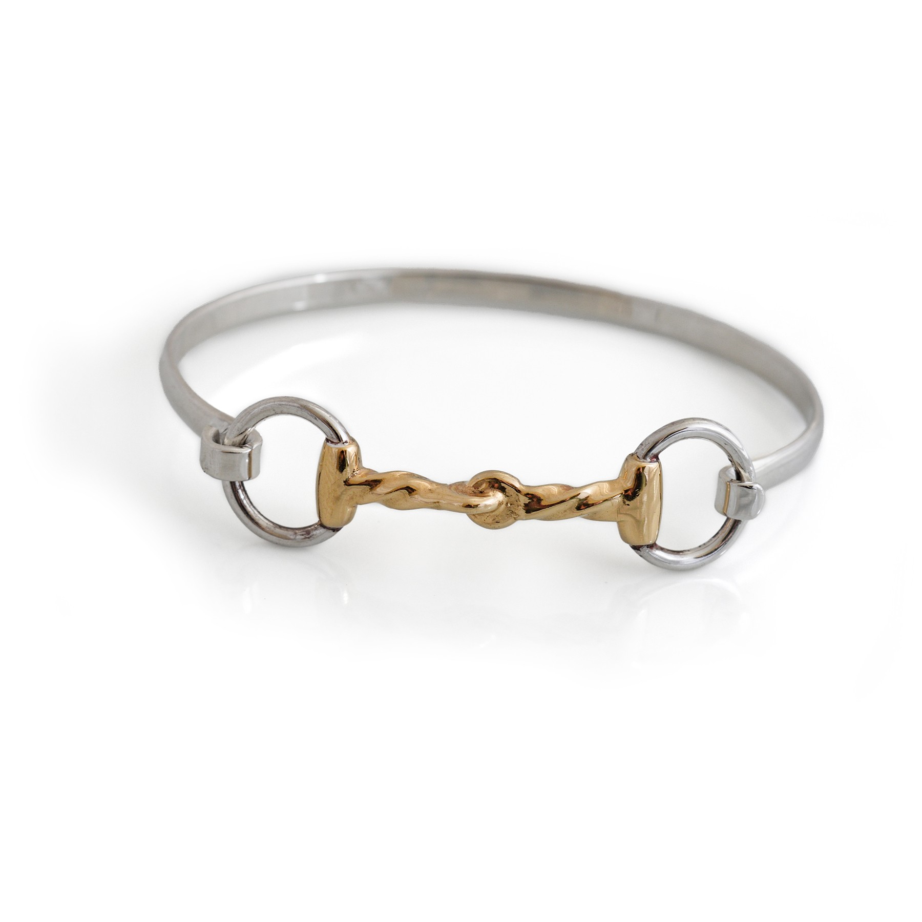 Exclusive Sterling Silver & 18ct Gold Plated Twisted Snaffle Bangle