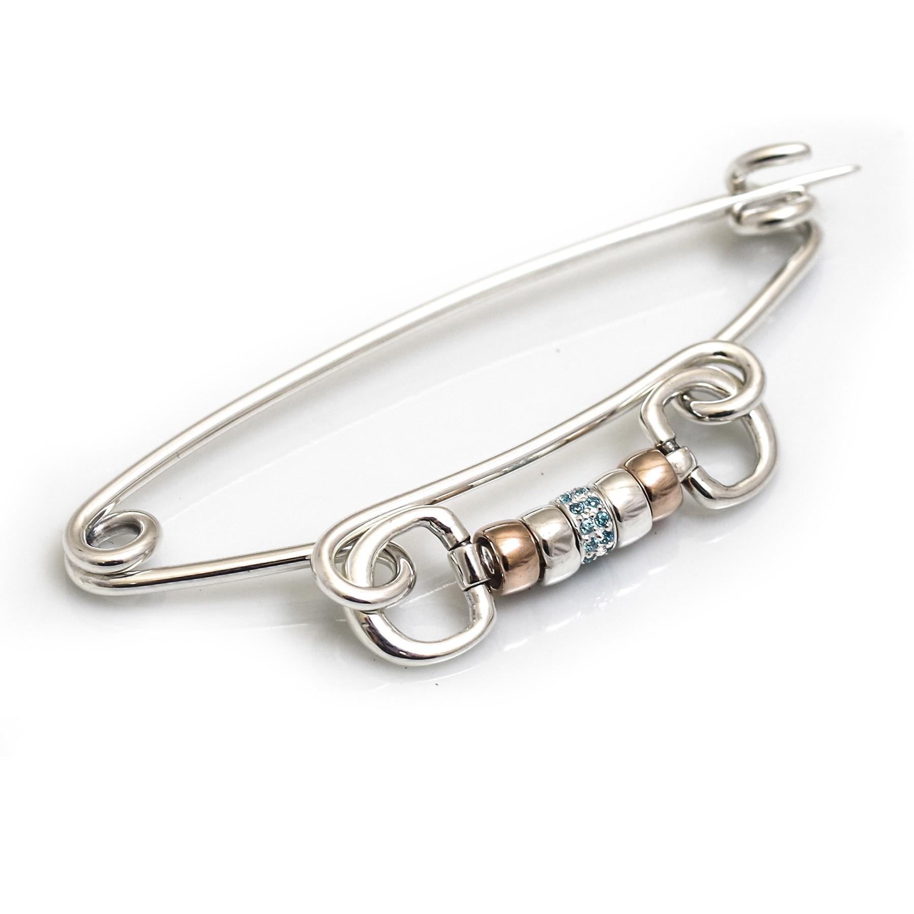 This new stock pin adds one sparkly cz bead in the centre with silver and 18ct rose gold beads at either side of it. Perfect for adding a little bit of bling, simply choose which colour you would like in the drop down menu or if you have seen a colour that we don't have listed, let us know and we can make one up for you! The pin is good and sharp for easily passing through cotton or silk stocks.
