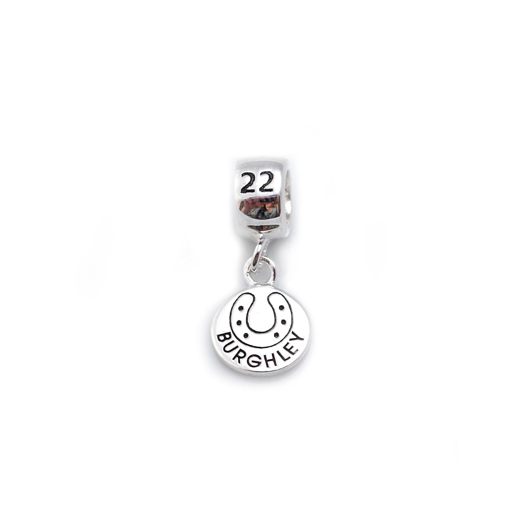 • The 2022 Burghley roller charm celebrating this year’s horse trials, complete with engraved horseshoe on one side and left blank on the other for your own engraving. Add to your ever growing collection with this lovely bead, which can be worn on a silver chain as a necklace, our Exclusive sterling silver foxtail bracelets, leather fox plait bracelets or our cherry roller bangles.