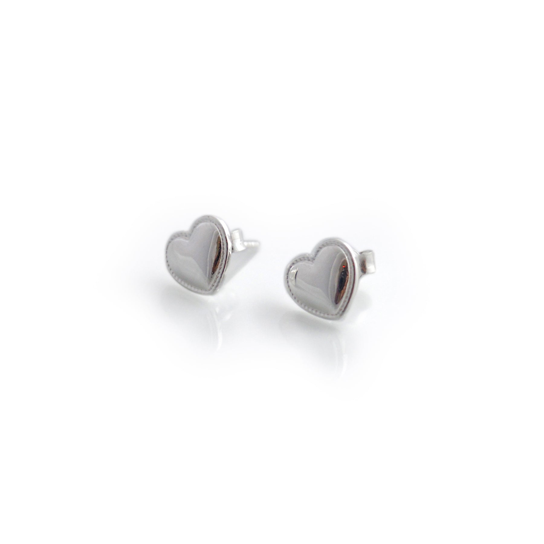 • Add a sweet yet sophisticated touch to your jewellery collection with these sterling silver heart stud earrings. Beautifully crafted from sterling silver, each polished heart features delicate beaded detailing around the edge, adding subtle texture and vintage-inspired charm. The smooth, high-shine finish catches the light perfectly, making them ideal for everyday wear or special occasions.