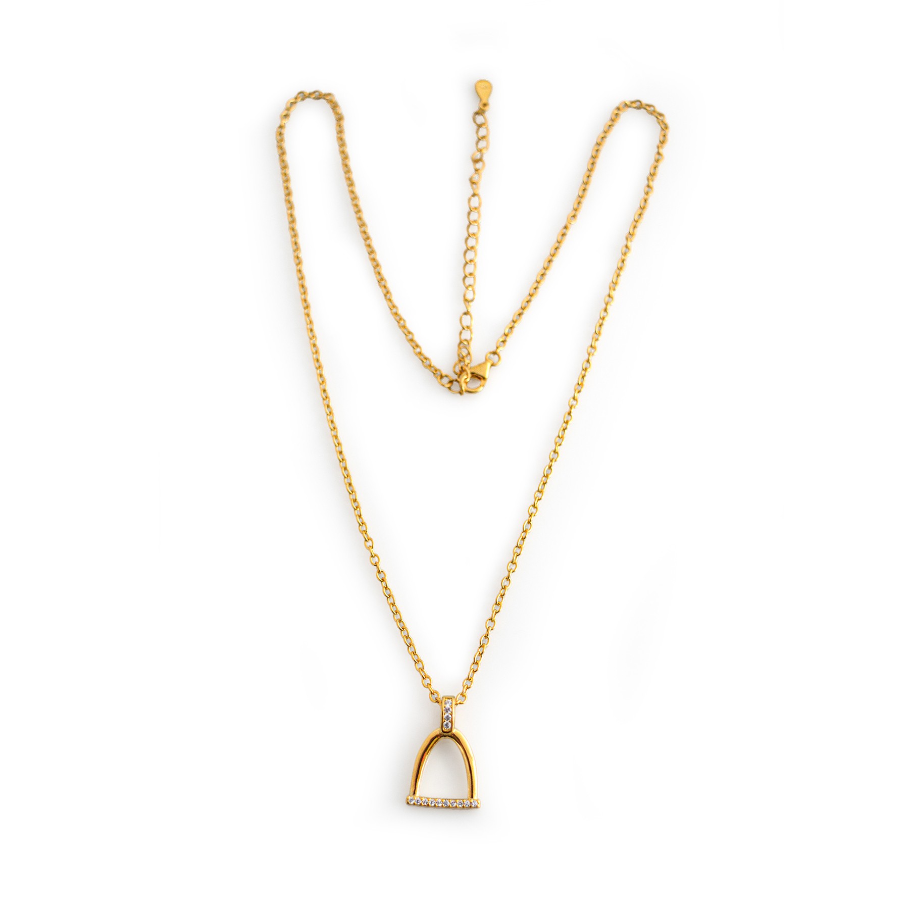 Add a touch of equestrian elegance to your jewellery collection with this stunning stirrup necklace. Expertly crafted in sterling silver with a luxurious 18ct gold plate finish, the piece features a beautifully shaped stirrup pendant, delicately adorned with sparkling cubic zirconia stones for a hint of glamour. The pendant hangs gracefully from a fine adjustable chain, offering both style and versatility. Perfect for everyday wear or special occasions, this necklace makes a thoughtful gift for horse lovers or anyone who appreciates timeless, refined design.