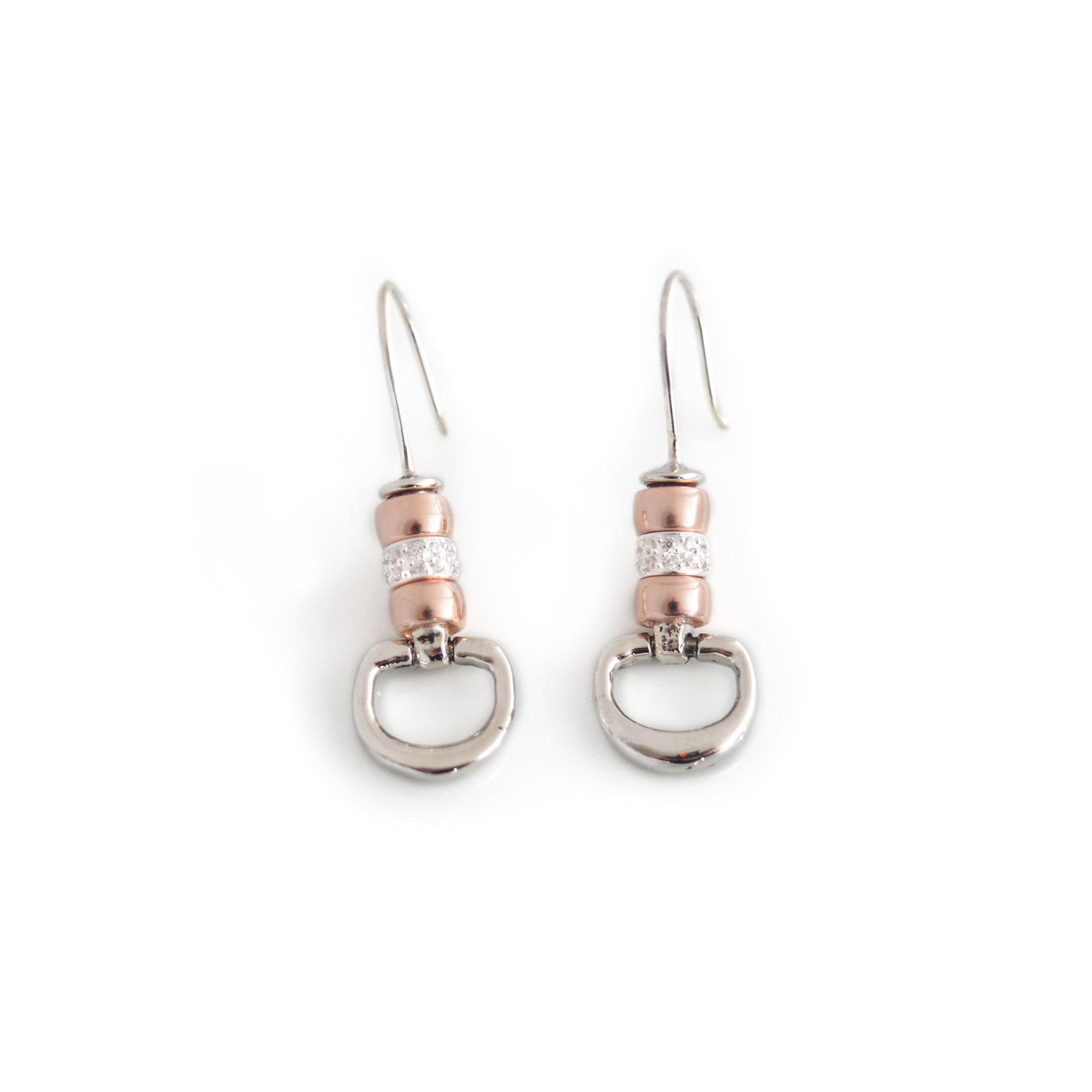 Hiho designed exclusive Cherry Roller earrings are the perfect addition to the Cherry Roller range of jewellery, loved by all true equestrians. These sterling silver earrings with two rose gold pated beads and one sparkly bead look wonderful either on their own or with the cherry roller necklace. Two tone jewellery is all the rage and these pretty snaffle earrings are sure to please lovers of horse jewellery everywhere. Remember to select your colour cz from the drop down list and if we aren't showing the colour you would like, drop us an email and we can see what we can do.